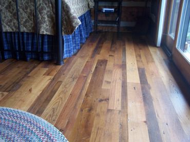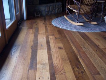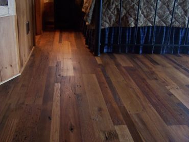 Reclaimed Wood flooring at Gum Ridge Mill is custom run, 3/4 inch thick, T&G, narrow board and wide plank.