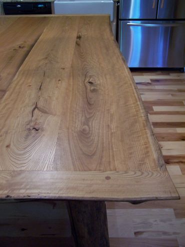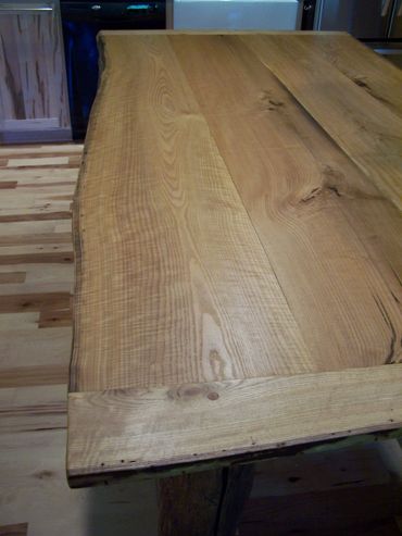 This Black Walnut island counter top is 2 in thick x 48 in wide x 84 in long, with a radius on one end. Waterlox Satin Finish.