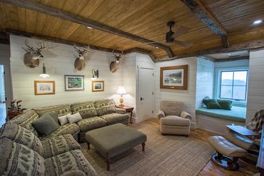 This clear (no knots) poplar wall paneling was custom sawed from the log and custom milled. The planks are 9 inches wide, 3/4 inch thick, tongue & groove (T&G), with 1/16 inch custom gap between the boards for the classic shiplap look. Rather than paint, the paneling is finished with Waterlox Satin Finish.